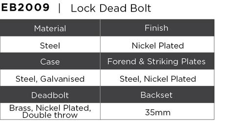 Euro Brass – EB2009 – Dead lock 35mm b/s nickel plated faceplate (cyl)